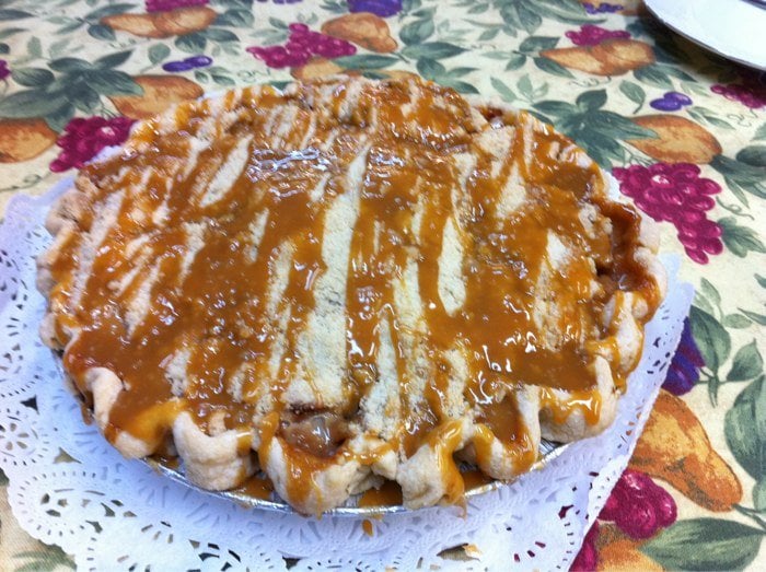 Traditional banana cake with pineapple, pecans, and coconut. Frosted with cream cheese frosted and topped with toasted pecans.